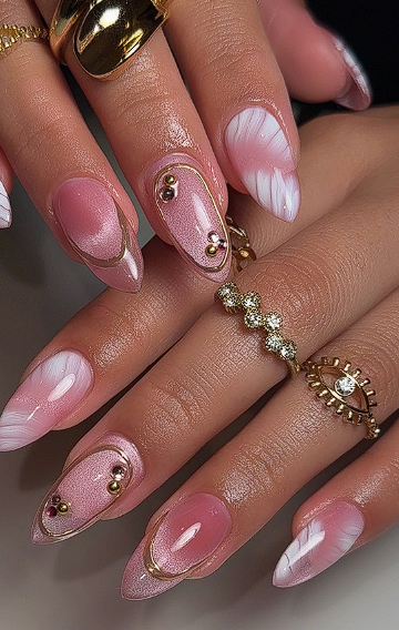 One of the most elegant choices is a sheer nude base with micro French tips. You can keep the tips white, or make them modern with beige, brown, or soft gold tones. Another classy option is a nude base with thin gold lines, minimal swirls, or a simple pearl accent.