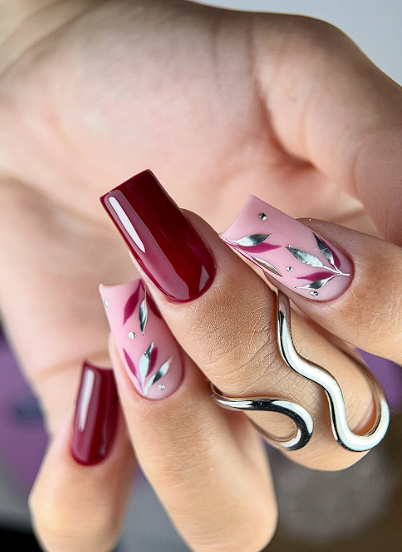 If you prefer mostly neutral nails, paint all nails in your favourite nude and choose one accent nail per hand in a soft metallic like champagne, pewter or rose gold. It adds a winter glint without taking over the whole manicure.