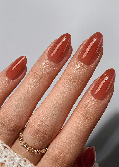 Coffee brown nails feel like a cup in your hands before you step outside. Deep brown with a high gloss finish works especially well on shorter square or squoval nails. It is rich, simple and very flattering on many skin tones.