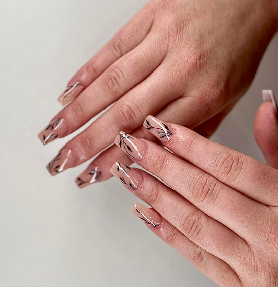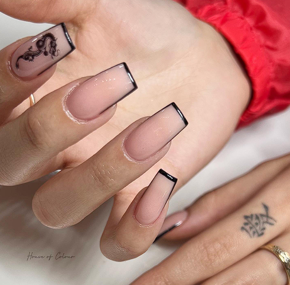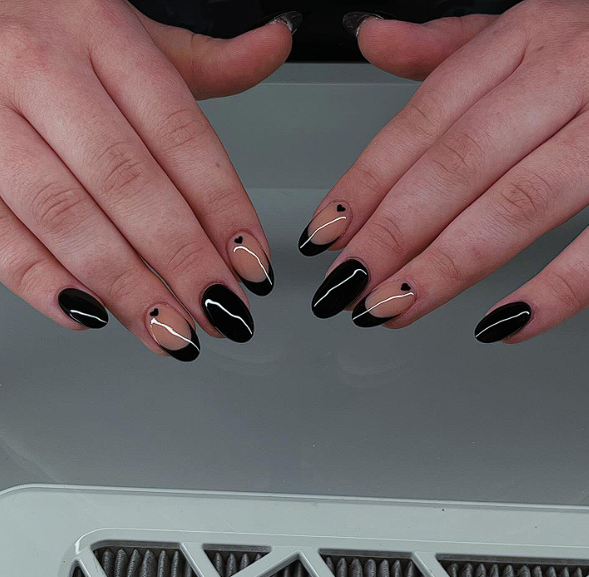 11. French manicure with thin charcoal tips