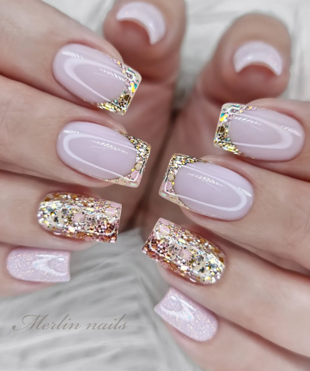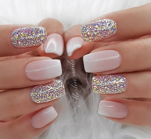 7. Sheer pink with silver micro glitter