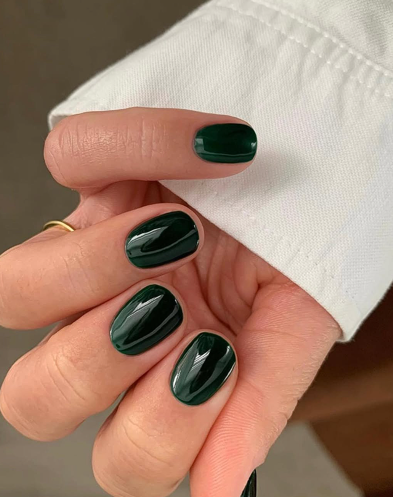 15. Matte forest green early winter nails