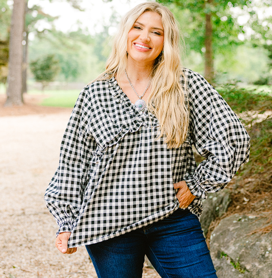 A checked or plaid coat instantly makes even basic jeans and a knit look more considered. Keep the layers underneath simple in solid colours.