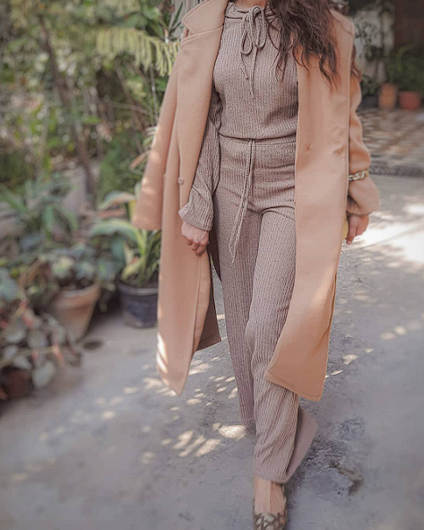 Add a structured coat and ankle boots to turn it into one of your go to early winter outfits. Keep the set in a neutral tone like oatmeal, grey or deep green to avoid a pyjama feel.