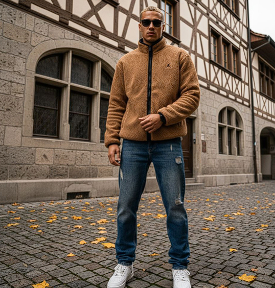 Sherpa or fleece jackets are perfect for early winter when you want warmth but not a heavy coat yet. Wear with straight leg jeans and a simple top.