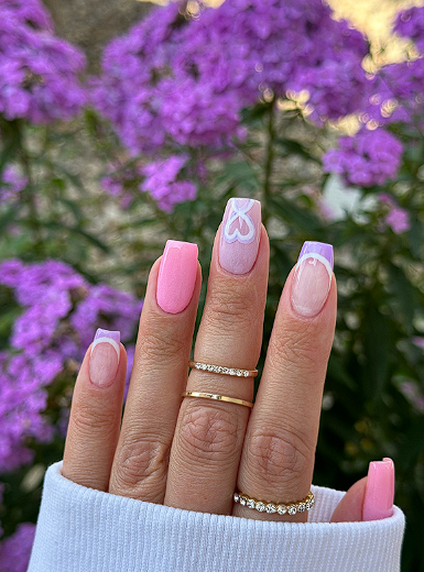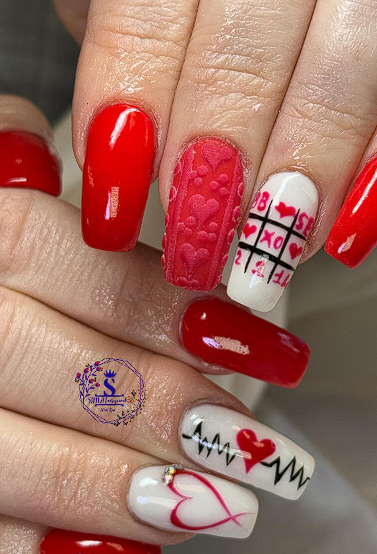 You can do hearts in different sizes, heart-shaped French tips, or even negative space hearts where the heart shape is created by leaving part of the nail bare.