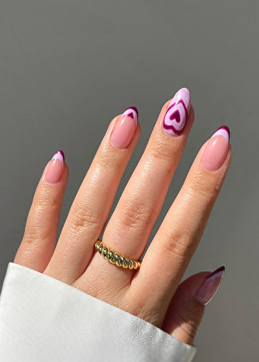 Heart French tip nails look especially flattering on almond and oval nails because the shape complements the soft design.