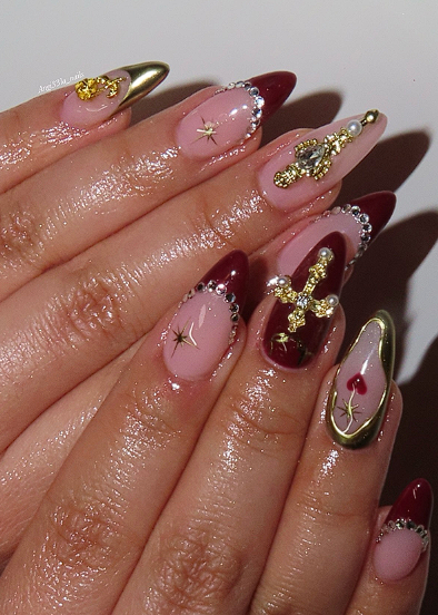 Red heart nails are timeless and romantic, but they don’t have to look like a Valentine’s theme if you style them correctly.