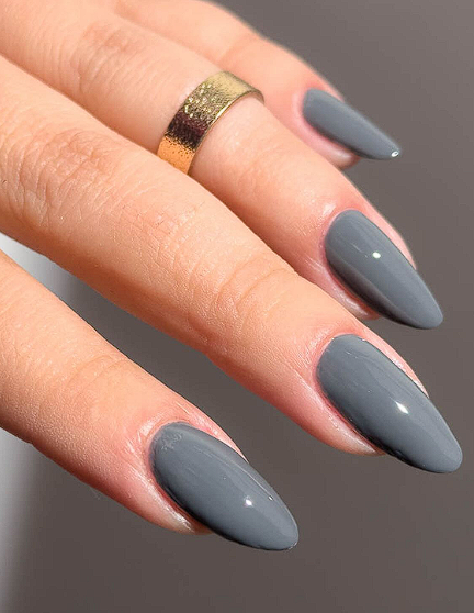 Light to medium grey looks like winter skies in a subtle way. On short square or rounded nails, soft grey feels modern and minimal.