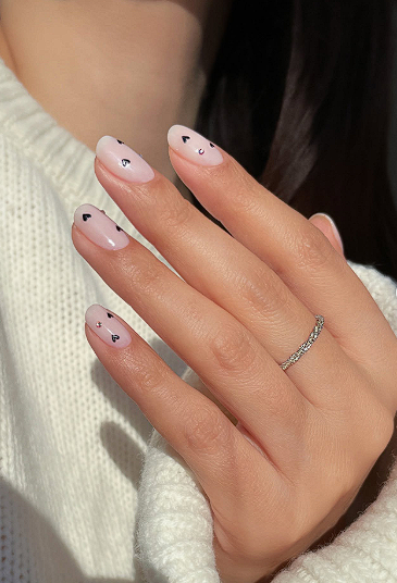 For minimal nail art that suits January, keep a clear or sheer base and place tiny white dots near the tips or cuticle.