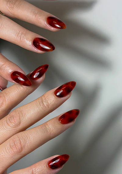 December nails usually belong to glitter, deep reds and full party mode.