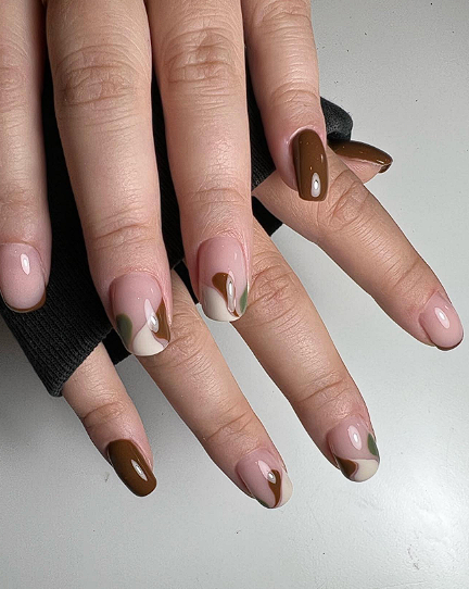 11. Latte nails in warm beige and coffee tones