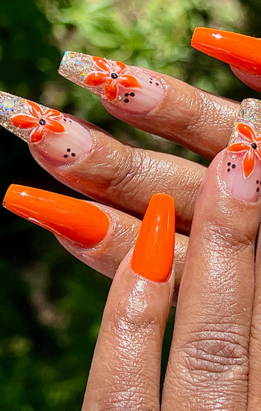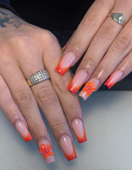 Orange ombré nails are a stunning way to add dimension. You can fade from nude to orange, from orange to white, or even blend orange into pink for a sunset-inspired look.