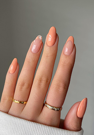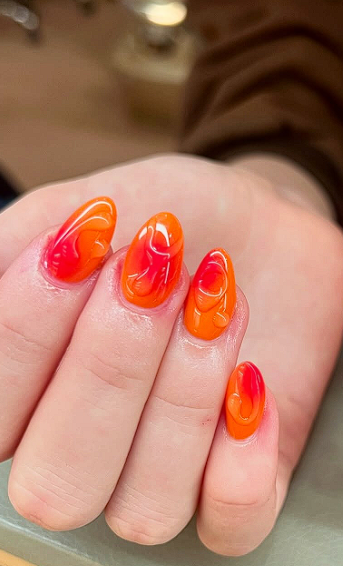Blend deep orange with soft peach or pink for a sunset effect. This ombré style adds depth while remaining wearable. It works best on medium to long nails for a dramatic fade. Ideal for summer evenings or casual gatherings.