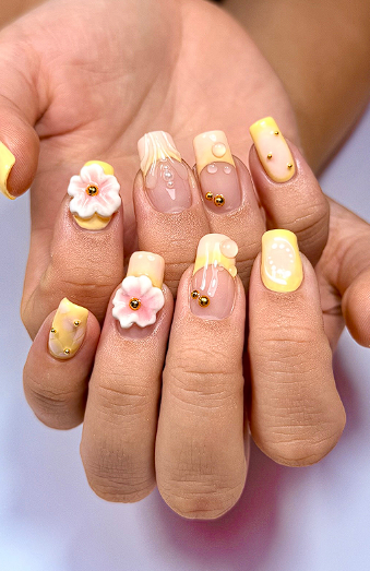 If you want something playful, tiny fruit accents like oranges or small floral designs can look cute, especially in summer.