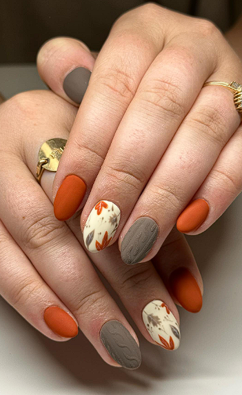 If you want subtle nail art, burnt orange pairs beautifully with beige, cream, and soft brown accents.