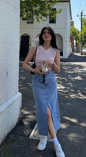 A simple and reliable casual look is straight-leg jeans with a quality knit top and clean sneakers or loafers. Add a lightweight jacket or cardigan and the outfit instantly feels finished. Another easy option is a midi skirt paired with a tucked-in top and flat sandals or ankle boots.