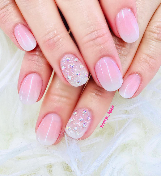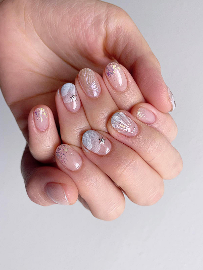 Milky sheer nails use a cloudy, semi transparent shade that blurs the natural nail without hiding it.