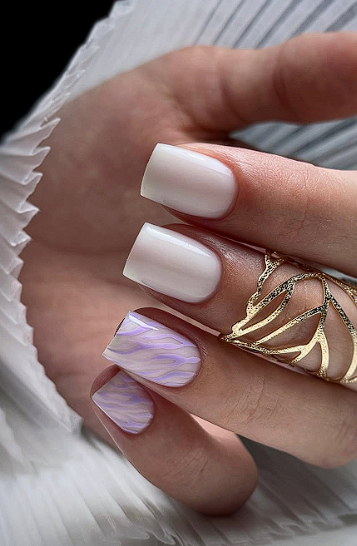 Swirl art can be scaled down for short nails. Instead of covering every finger, choose one or two accent nails for swirls.