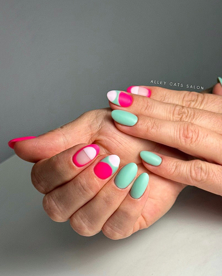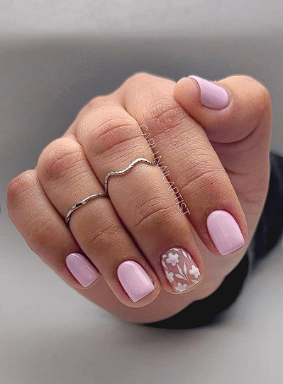Choose one pastel for all nails or mix pastel shades like mint, lavender, baby blue, butter yellow and blush pink. Keep the shape rounded or squoval for a gentle look that goes well with spring clothes and light outfits.