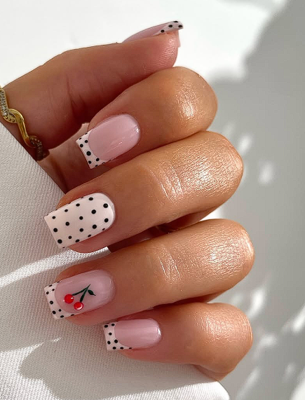 6. Short nails with tiny dot accents