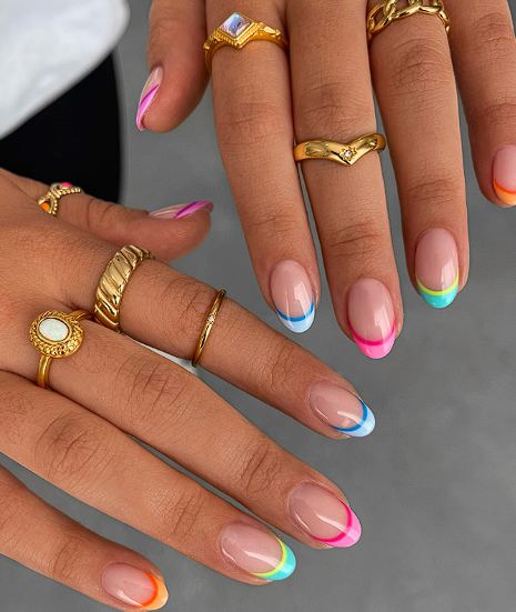 - Pastel tips in spring shades