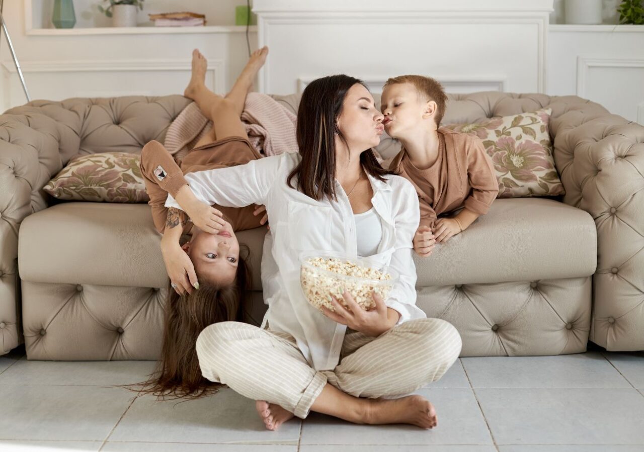 An oversized sweater paired with comfortable leggings creates the ultimate cozy mom uniform. This classic combination is perfect for days at home or quick trips to the store.
