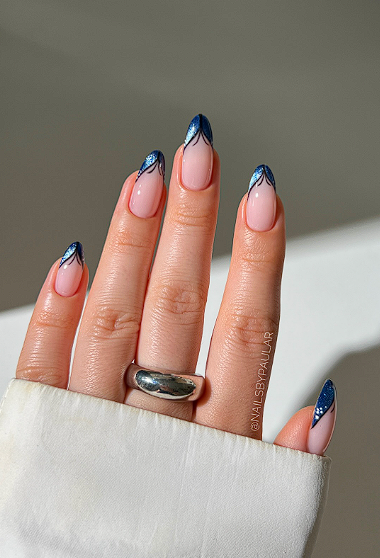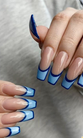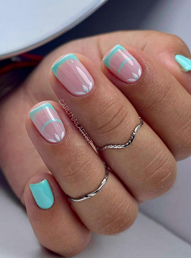 A nude or sheer base with turquoise tips looks modern and wearable. If you want something more playful, try a double French tip, with two thin turquoise lines at the tip. Another trendy option is a micro French tip, where the turquoise line is very thin for a minimalist vibe.