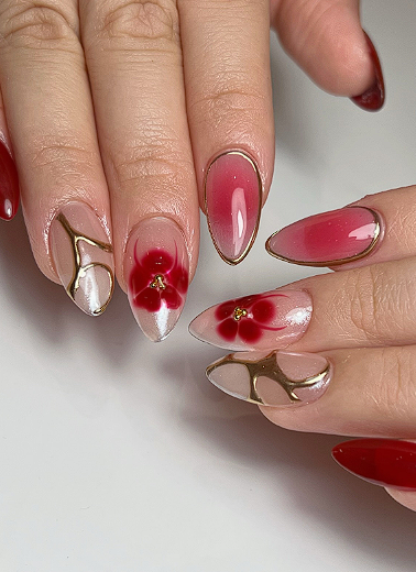 For short nails, solid colors and minimal designs usually look best. A deep red, soft taupe, or milky white set looks clean and polished. Micro French tips are also perfect for short nails because the design looks delicate and tidy.