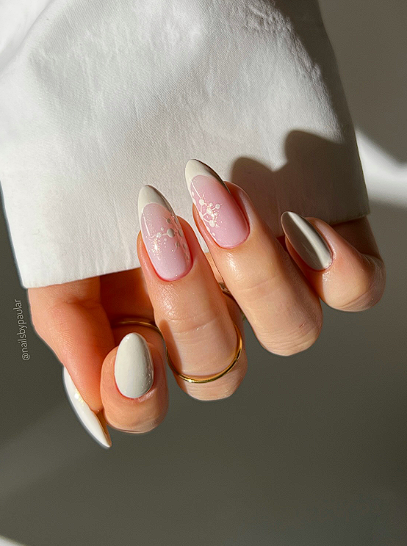 Neutral winter gel nails don’t have to be plain. Adding subtle shimmer, chrome tips, or a glossy accent nail keeps the look interesting. Beige, taupe, and milky white remain the base. These designs feel elevated without being bold.