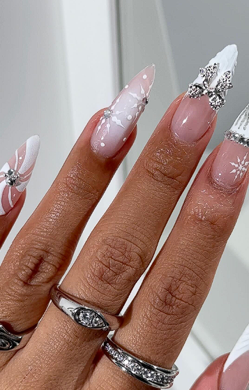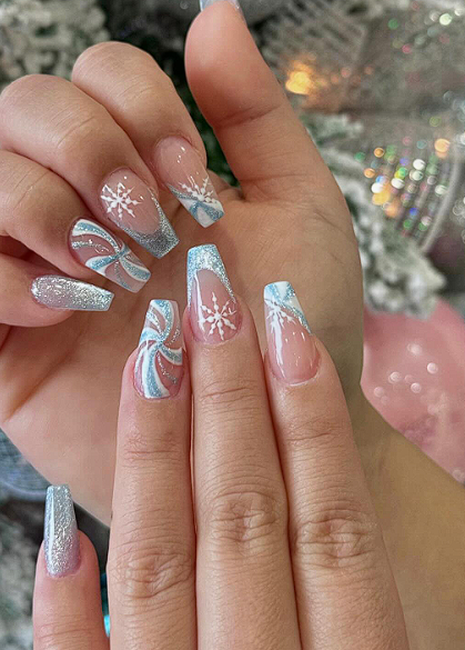 Long nails give you more space for winter nail art and layered finishes. This is where designs like glitter fades, detailed patterns, and chrome effects really stand out.