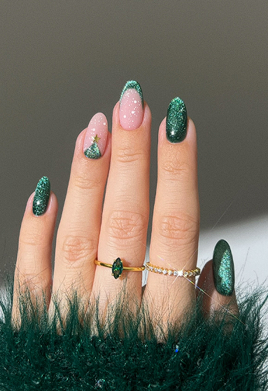 Holiday-inspired winter gel nails can still look elegant. Deep reds, forest greens, and soft gold accents feel festive without being too literal. One accent nail with shimmer or a thin metallic line works perfectly. This style transitions easily beyond the holiday season.